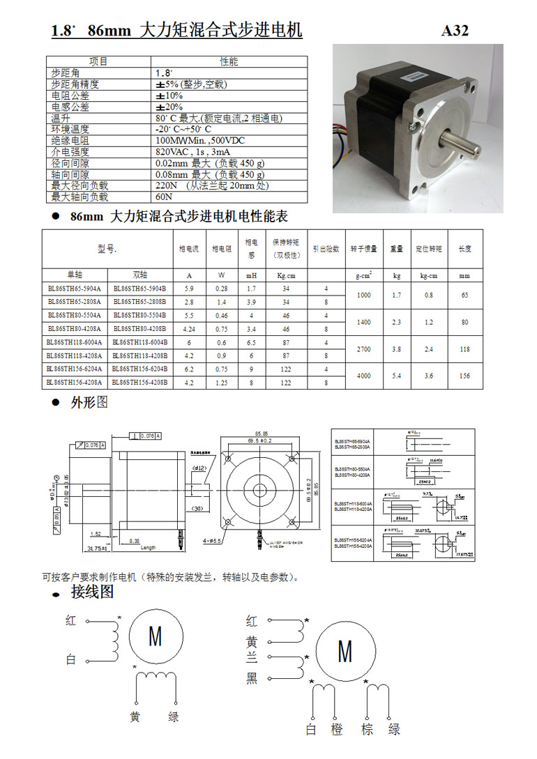 | 1.8°86mm兩相大力矩混合式步進(jìn)電機(jī) |